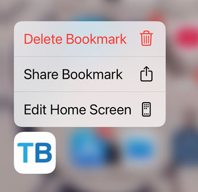 - Delete the TrueBet Bookmark by tapping and holding the “TB” icon on your home screen.