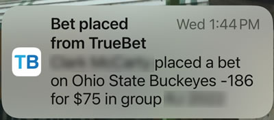 - You’ll start seeing notifications like the one below as your group makes bets: